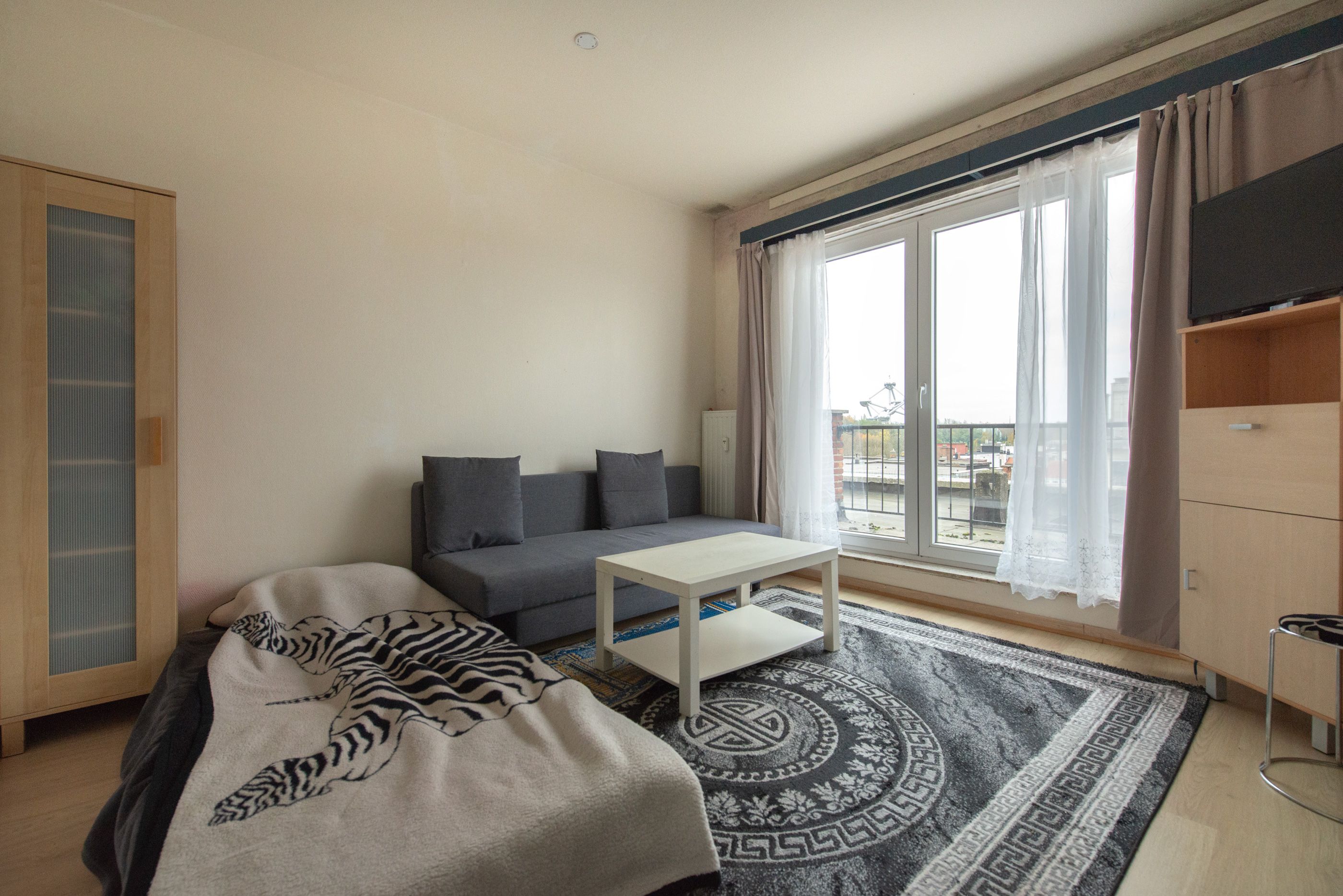 Aangename studio met een terras, in de nabijheid van alle faciliteiten (openbaar vervoer, winkels, scholen,...)