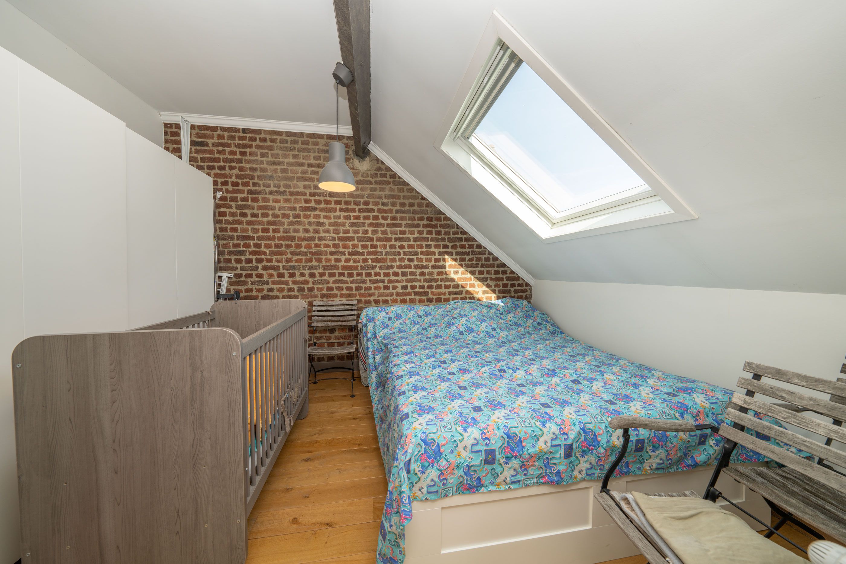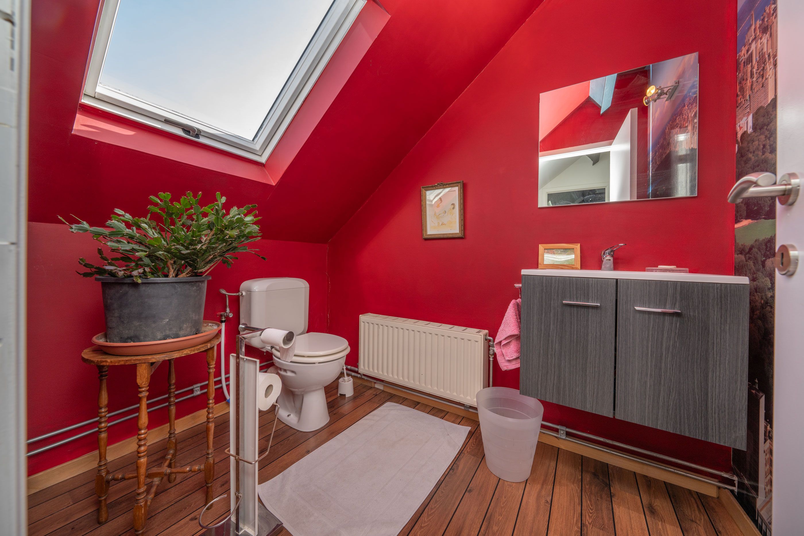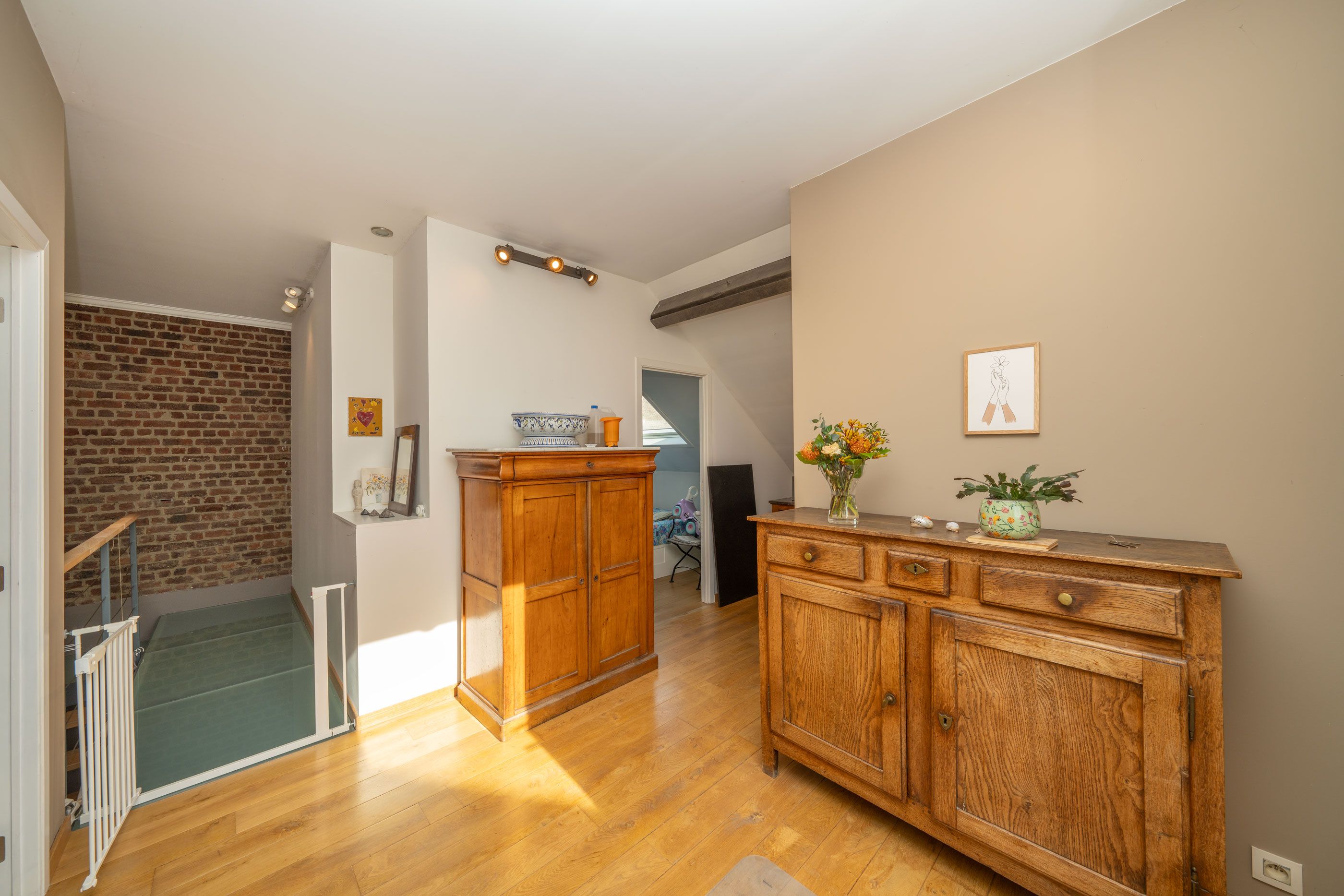 lichtrijke leefruimte (5m80x6m50) met pelletkachel en trap naar de tweede verdieping, volledig ingerichte keuken voorzien van een composieten werkblad en een eiland met eet-/barfunctie, badkamer (2m20x3m65) met ligbad, aparte douche, meubel met 2 wastafels, WC en stookketel