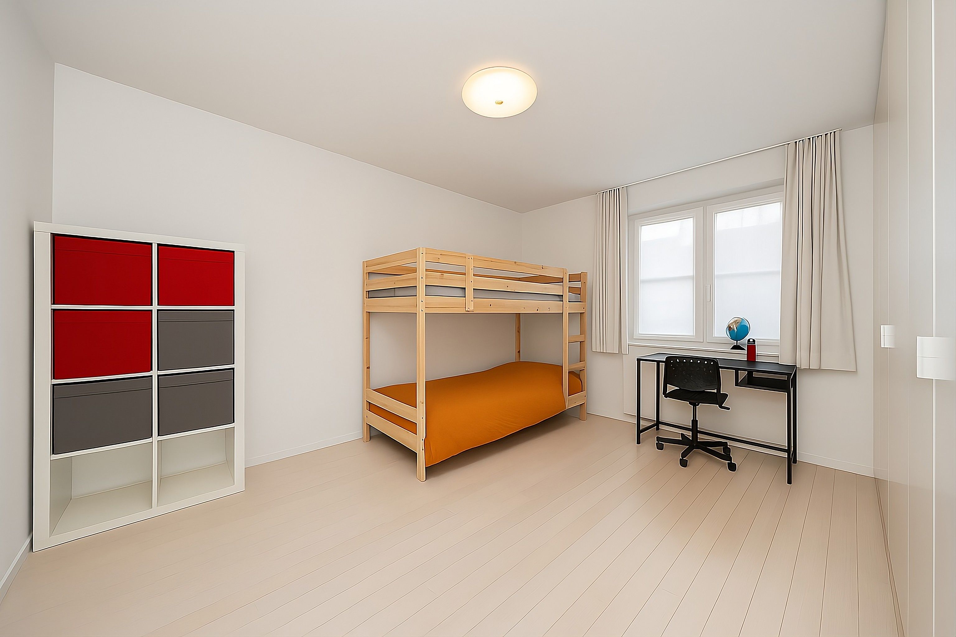 - mooie leefruimte met open keuken (43m²) die uitgeeft op een groot terras en een mooie gemeenschappelijke tuin