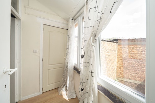 Tweede verdieping (55m²): traphall (1m70x3m45), slaapkamer 4 (3m30x4m05) met aanpalende badkamer, badkamer (1m75x1m90) met douche en meubel met wastafel, slaapkamer 5 (2m85x3m70), slaapkamer 6 (2m20x3m70), veranda (1m15x1m90), WC met wastafeltje.