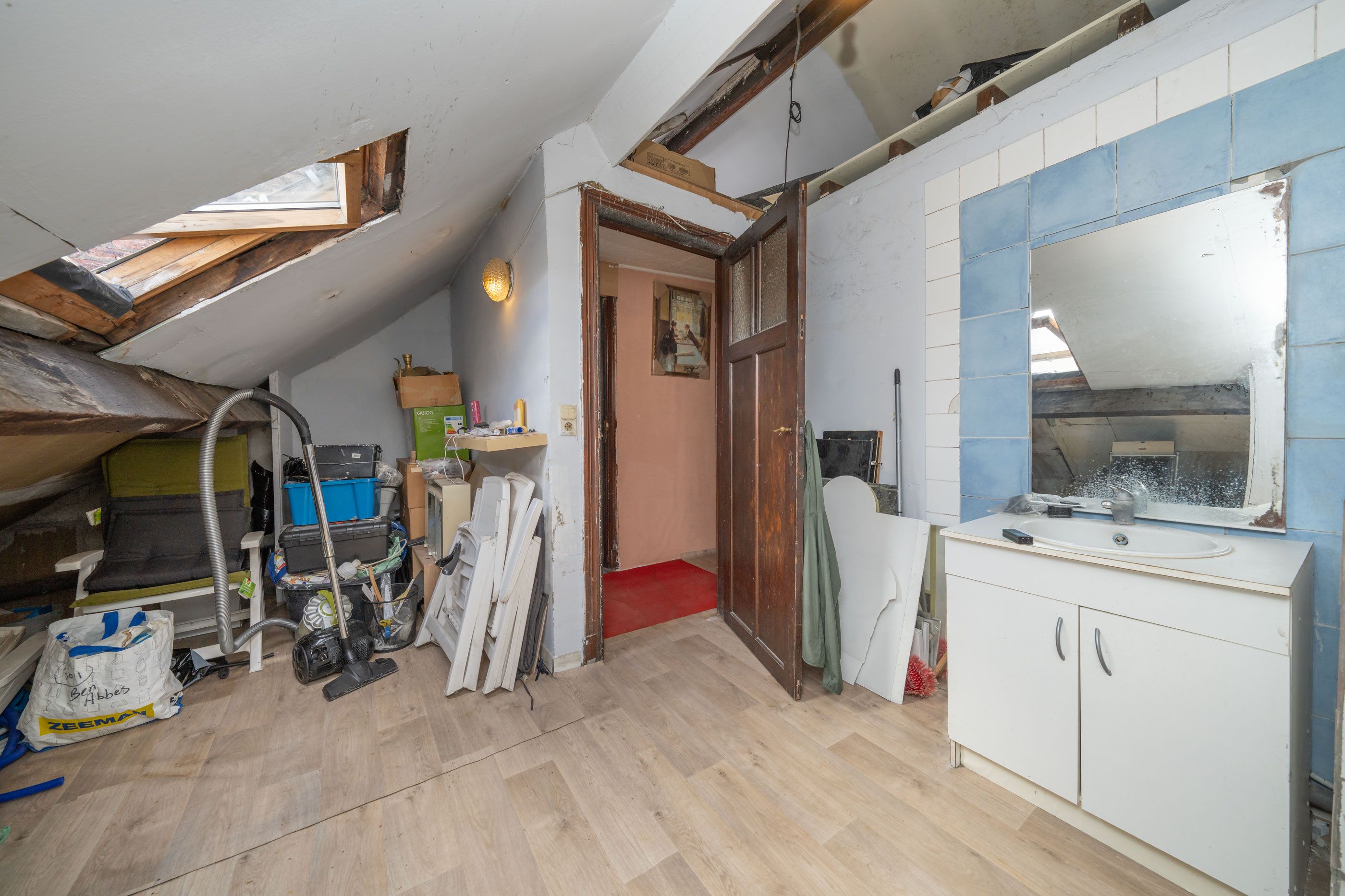Derde verdieping (36m²) - onder dak: traphall, slaapkamer 7 (5m10x3m00), badkamer (2m50x2m90).