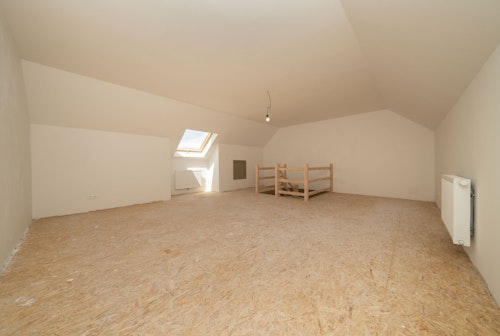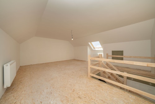 Op de tweede (zolder)verdieping (45m²): mooie ruimte (met dakraam) dewelke dienst kan doen als vierde slaapkamer, hobbyruimte, bureel, etc.